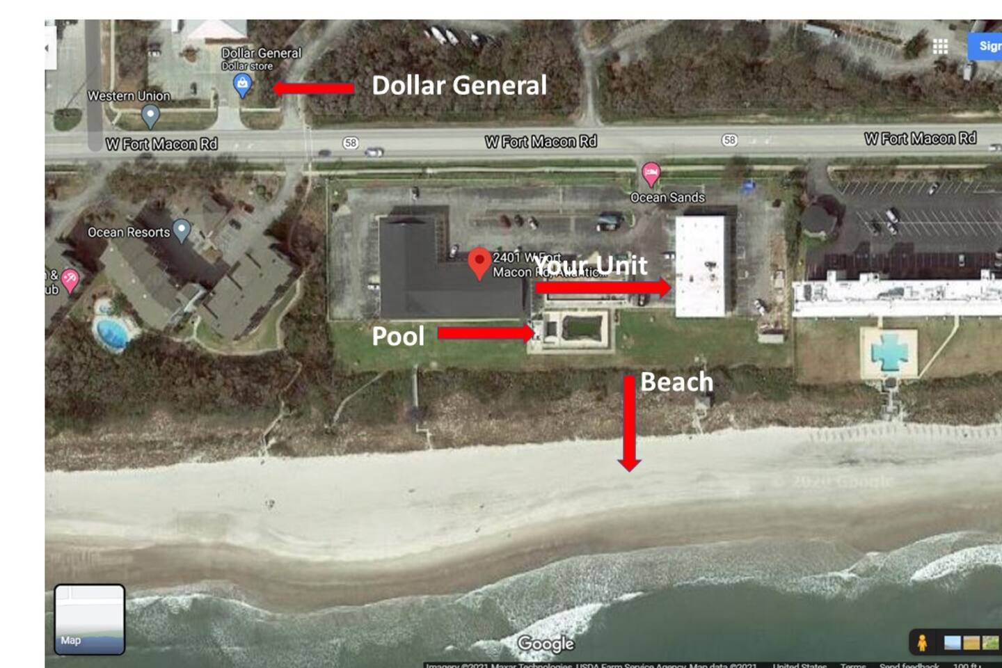 The complex is literally just over the dunes from the beach. Grab your towel and beach chair and take the short 50 step stroll across the yard to the beach. In close proximity to Atlantic Beach Boardwalk, Morehead City, Beaufort, and Emerald Isle Beach. NC Aquarium at Pine Knoll Shores is just down the road. Short drive to tons of area attractions and only about 40 minutes to historic New Bern.