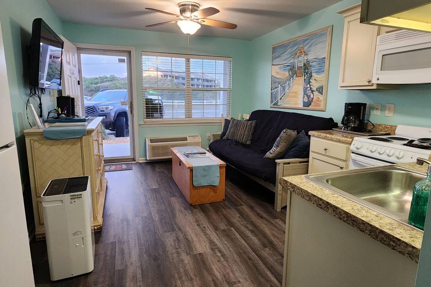 Come enjoy our studio condo haven by the sea! Well appointed kitchen and a full bath. No stairs in! Literally steps away from the beach/ocean and the complex also boasts a nice pool as another great amenity. Coffee, teas, linens, towels, and beach towels provided for your convenience. We have recently remodeled, so you can relax with high-speed internet, cable TV, along with an easy beach side life. Great place to stay for that quiet vacation getaway to the coast! We ask guests to pick up after themselves and straighten up prior to departure. The cleaning fee is for deep cleaning, sanitizing, and laundering the linens between guests to make the unit as safe as possible for every stay. While this unit does not have any ocean view, you are mere steps away! This particular unit is also right around the corner from the pool. Notes: The absolute maximum number allowed is four people, including infants. While the listing states we allow pets, we allow dogs only. We welcome nice, responsible humans of all races, ethnicities, origins, genders, orientations, and religions! This home is in Eastern North Carolina, near the water. While we have regular pest control visits, you may still encounter a bug or two. The home is professionally cleaned between every guest and bugs just sometimes appear in this region.