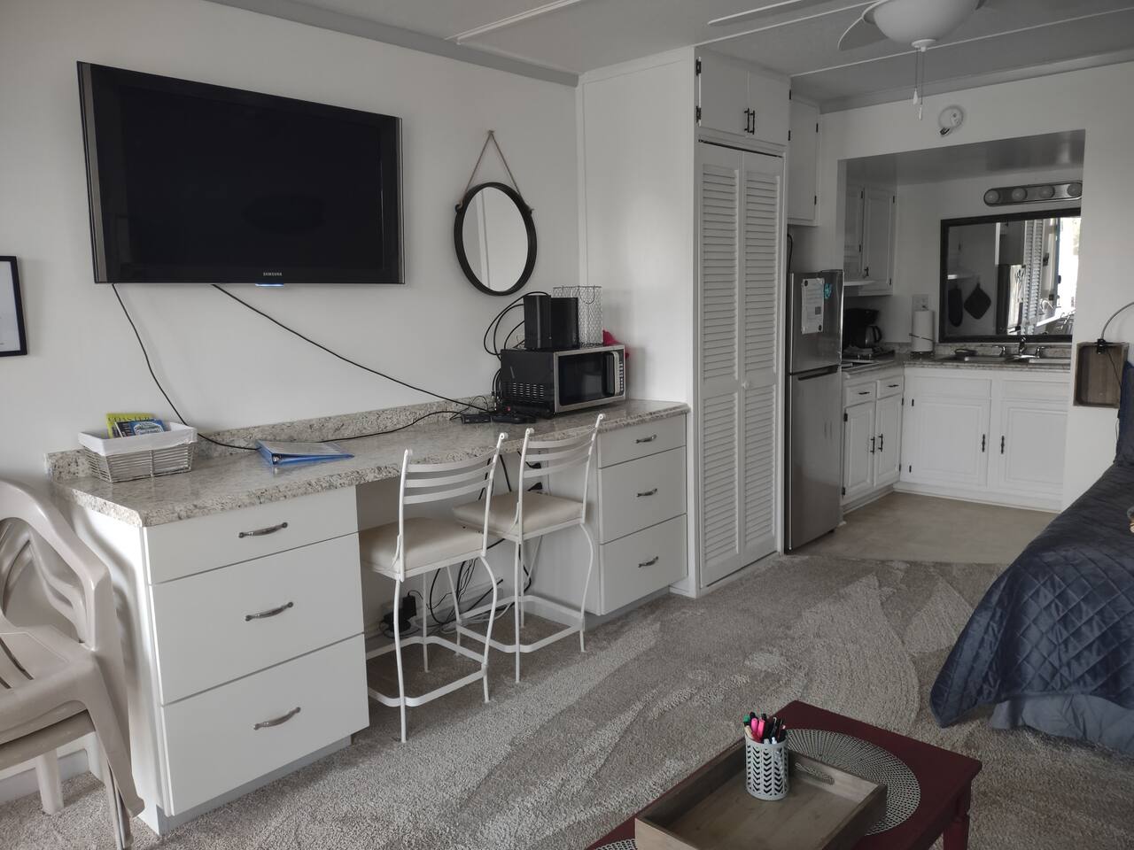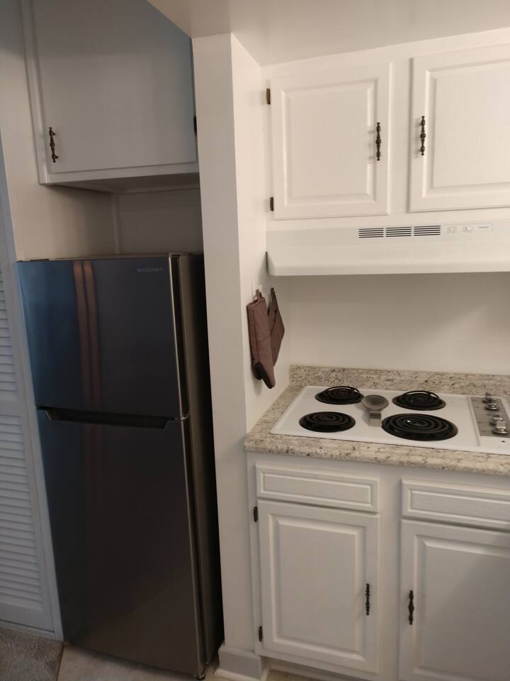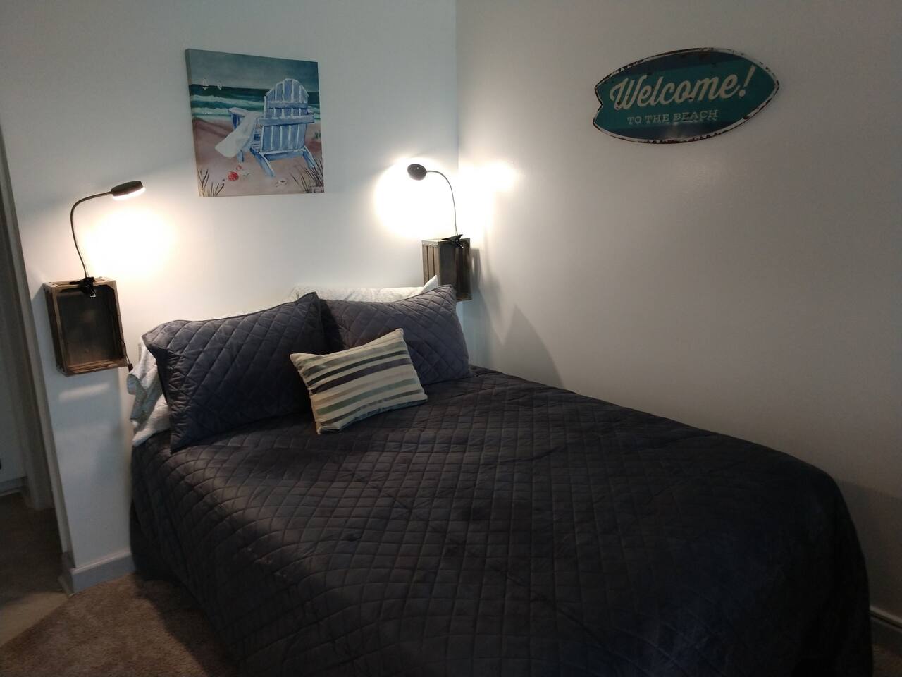 OFFERING MONTHLY SPECIALS FROM OCTOBER-MARCH, BASED ON LENGTH OF STAY. REACH OUT FOR PRICING. Sound side cute, clean & comfortable second floor condo, with access to a delightful beach, only a 3 minute walk away, right across the street via an easy public access. Includes a pool, outdoor grills, space for kids to run around, and free parking. Walking distance to a couple restaurants/shops and close to all Atlantic Beach, Emerald Isle, Morehead City, and Beaufort have to offer. Come enjoy your stay at the Southern Outer Banks! Well appointed kitchen and a full bath. Very comfortable full-size bed, plus a sleeper sofa for additional sleeping space. While it can accommodate up to four people, the condo may be a bit tight for four adults. A maximum of three adults is recommended. Two adults with two children is also OK for this space. Coffee, teas, linens, towels, and beach towels provided for your convenience. You can relax with high-speed internet, cable TV, along with an easy beach life. Great place to stay for that quiet vacation getaway to the coast! You'll have full private access to the entire studio condo, along with shared community amenities, such as the pool, the yards, the walk-to beach, gazebo, picnic tables, deck, and a great community on the island! We ask guests to leave no trace - pick up after themselves and straighten up prior to departure. The cleaning fee is for deep cleaning, sanitizing, and laundering the linens between guests to make the unit as safe as possible for every stay. Notes: We welcome nice, responsible humans of all races, ethnicities, origins, genders, orientations, and religions! This home is in Eastern North Carolina, near the water. While we have regular pest control visits, you may still encounter a bug or two. The home is professionally cleaned between every guest and bugs just sometimes appear in this region. The COA has security cameras on the exterior of the buildings that are on all the time. There are no recording devices or cameras inside the unit.