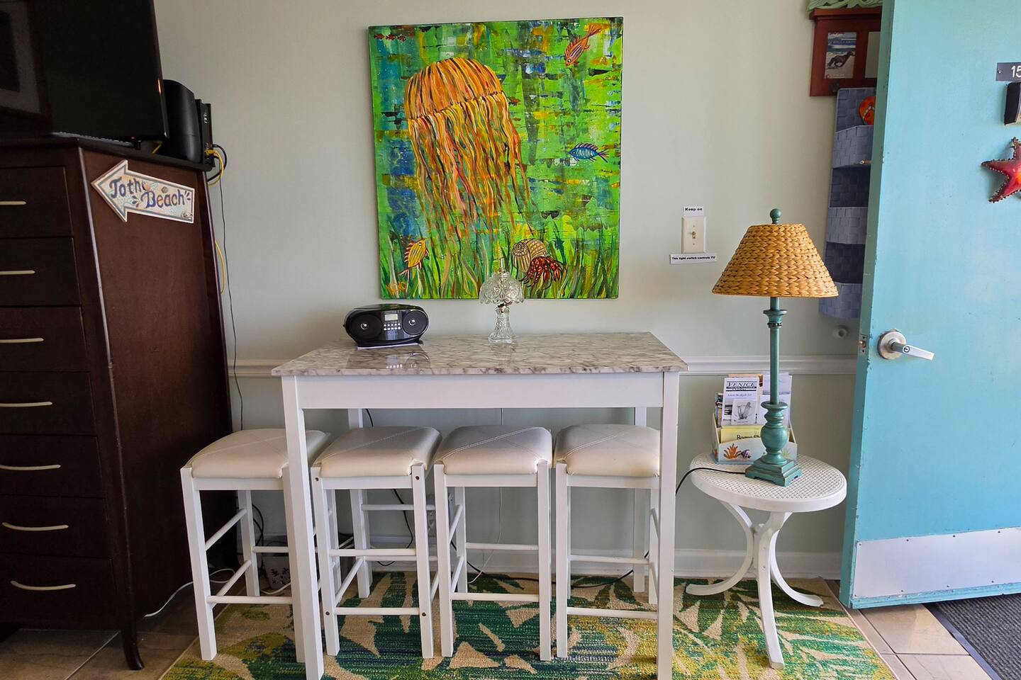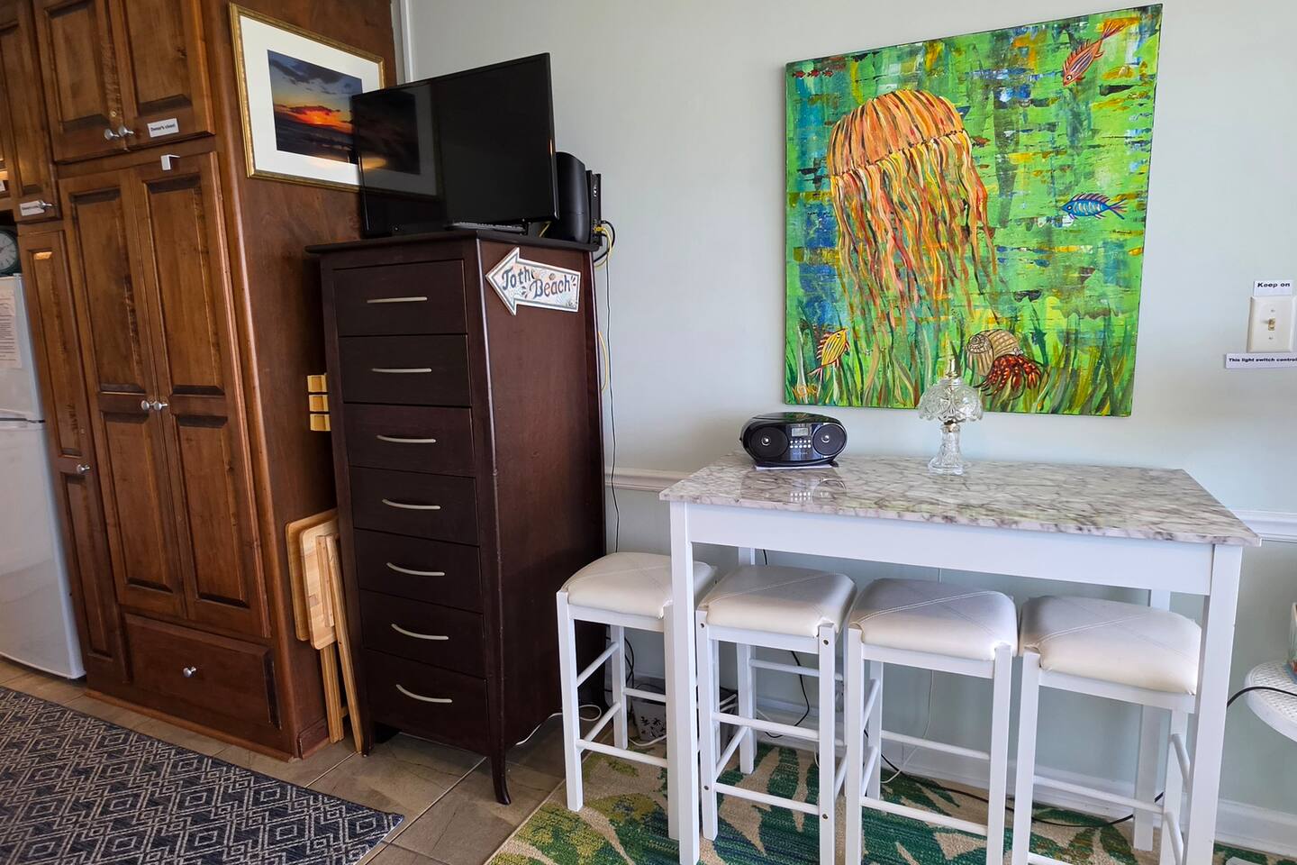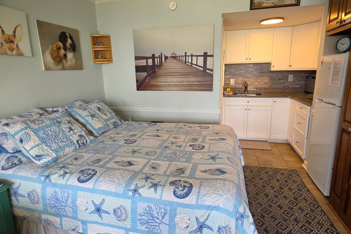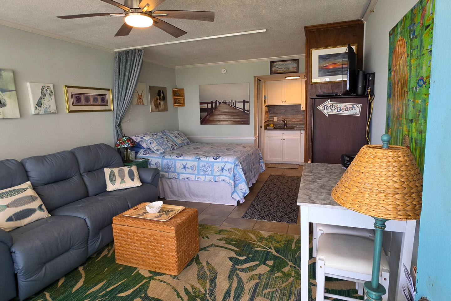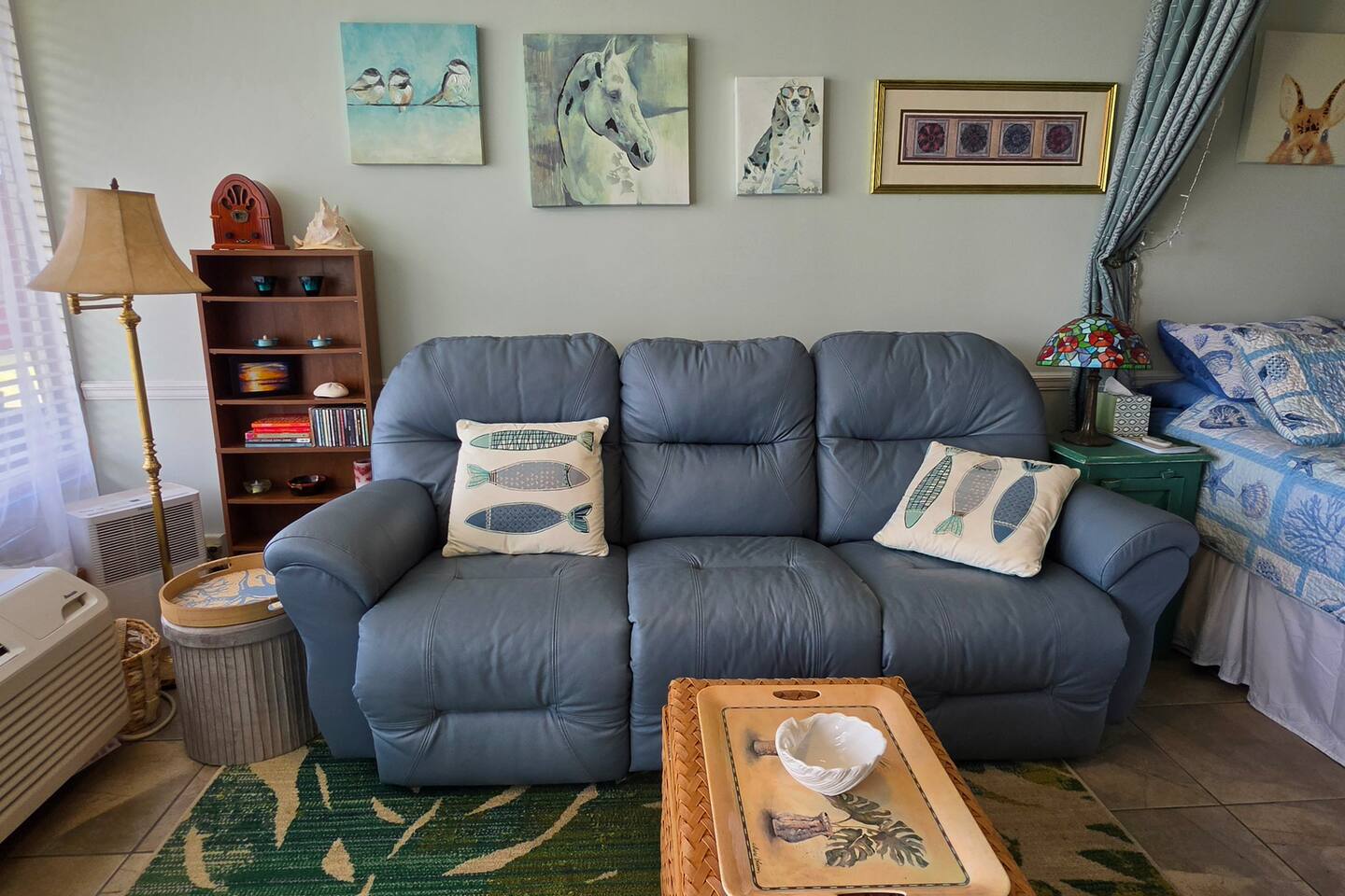 Sound side cute, clean & comfortable first floor condo, the door opens to the shared pool, and the complex has easy access to a delightful beach, only a 3-minute walk away, right across the street via a public access. Includes a pool, outdoor grills, and free parking. Walking distance to a couple restaurants/shops and close to all Atlantic Beach, Emerald Isle, Morehead City, and Beaufort have to offer. Come enjoy your stay at the Southern Outer Banks! Well-appointed kitchen and a full bath. Very comfortable queen-size bed, that elevates and lowers for your sleeping comfort. The cozy couch also has double recliners for a relaxing evening catching up on the news or your favorite TV shows. You can relax with high-speed internet, cable TV, along with an easy beach life. Great place to stay for that quiet vacation getaway to the coast! You'll have full private access to the entire studio condo, along with shared community amenities, such as the pool, the yards, the walk-to beach, gazebo, picnic tables, deck, and a great community on the island! Notes: We welcome nice, responsible humans of all races, ethnicities, origins, genders, orientations, and religions! This home is in Eastern North Carolina, near the water. While we have regular pest control visits, you may still encounter a bug or two. The home is professionally cleaned between every guest and bugs just sometimes appear in this region.
